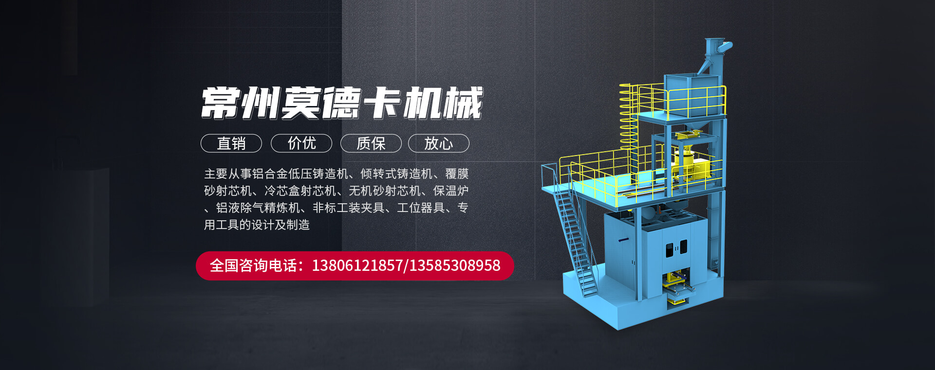 常州莫德卡機械有限公司坐落于經(jīng)濟發(fā)達的長三角地區(qū)--江蘇省常州市新北區(qū)高新技術(shù)開發(fā)區(qū)。公司主要從事鋁合金低壓鑄造機、傾轉(zhuǎn)式鑄造機、覆膜砂射芯機、冷芯盒射芯機、無機砂射芯機、保溫爐、鋁液除氣精煉機、非標工裝夾具、工位器具、專用工具的設計及制造。公司成立于2015年5月,注冊資本500萬元,員工50多人,技術(shù)人在鋁合金和黑色鑄造產(chǎn)品開發(fā)方面具有深入的理論研究和豐富的汽車零部件制造經(jīng)驗,集工廠規(guī)劃、工藝...